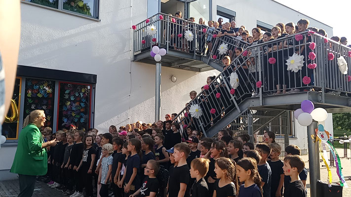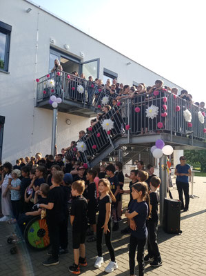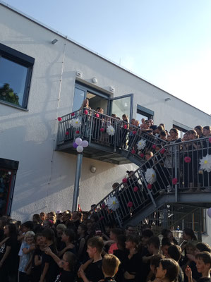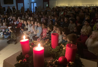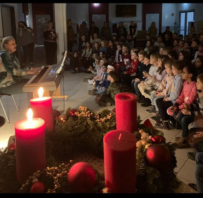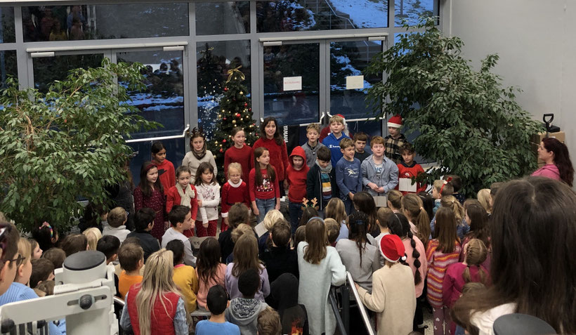 Gestartet haben wir mit einem gemeinsamen Treppenhaussingen, wobei der Schulchor unter Leitung von Herrn Krähe (Musikschule Oberlahn) und Frau Schütz drei weihnachtliche Lieder vortrug.